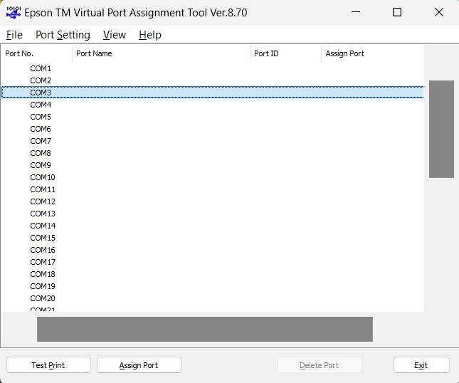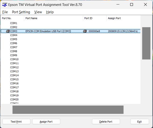 The port assignment screen should then re-appear and you should see a screen similar to this one: