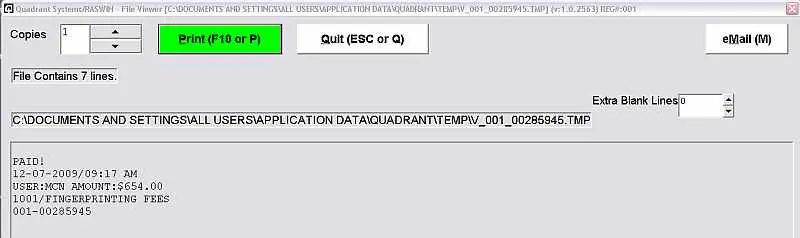 print button.![]() Multiple documents can be printed by sending the data more than one time. Depending on the particular document to be printed it might be necessary to print one validation in a different place (typically, further down the page) than it would print by default. Therefore, the 'extra blank lines' option allows you to specify a given number ( 1 to 99) of blank lines to print before printing the actual text of the validation. ![]() To do this you simply enter an alternate value (the default is 0 and the maximum value is 99) or use the 'up/down' arrows just to the right of the "Extra Blank Lines" box to tell it how many additional blank lines should be printed. Normally, each time you click the up/down button it will adjust the associated value by +1 or -1. If you want it to adjust by a different value you can set the EXTRA-BLANK-LINES-INCREMENT value to that value ... typically this would be a setting between 3 to 6, depending on the number of lines of text to be included in your document validation. The default value for EXTRA-BLANK-LINES-INCREMENT is 1. |